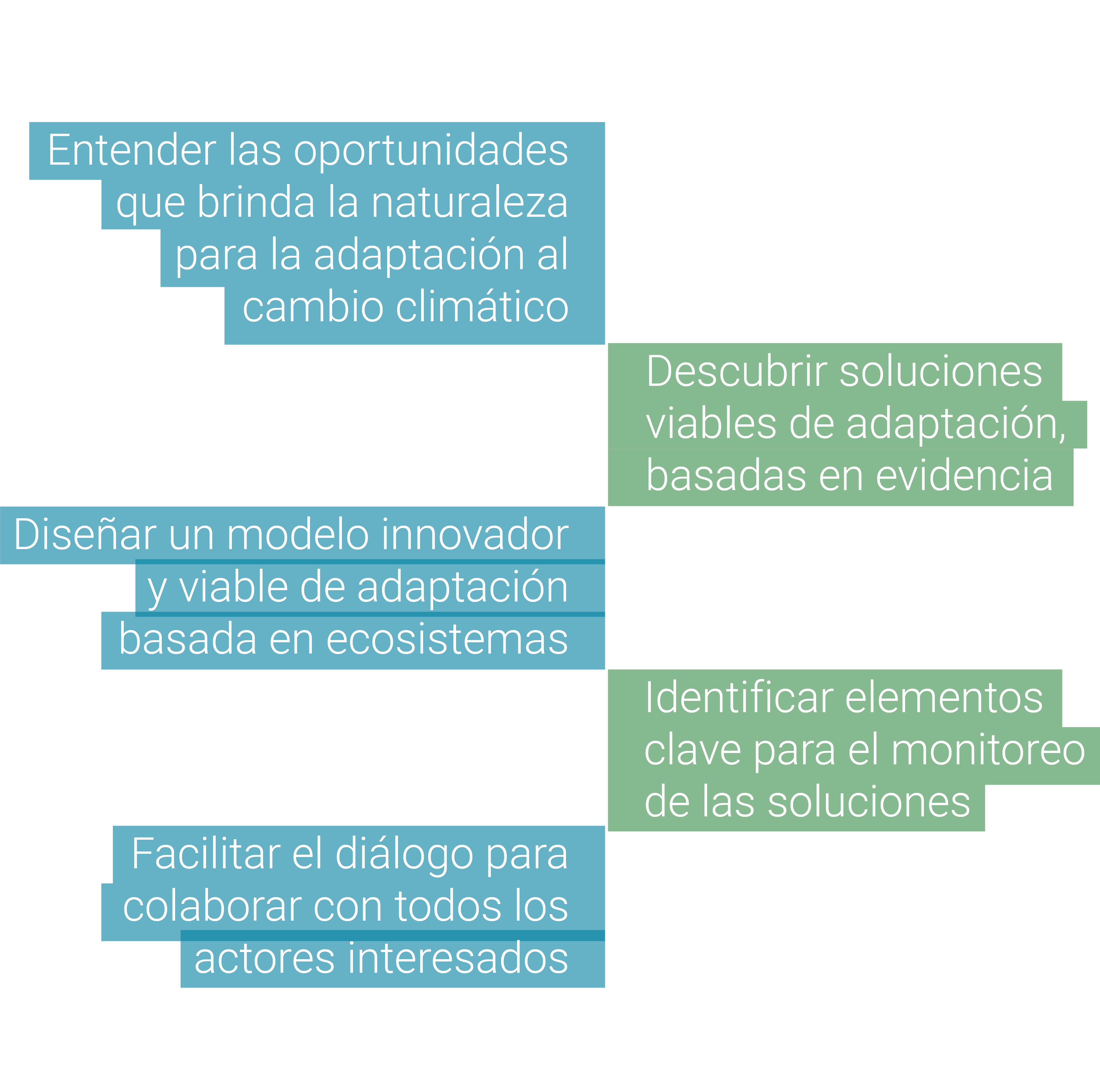 Te brindamos conocimiento, herramientas y metodologías para diseñar y escalar un modelo para la adaptación que aprovecha las oportunidades que brinda la naturaleza.